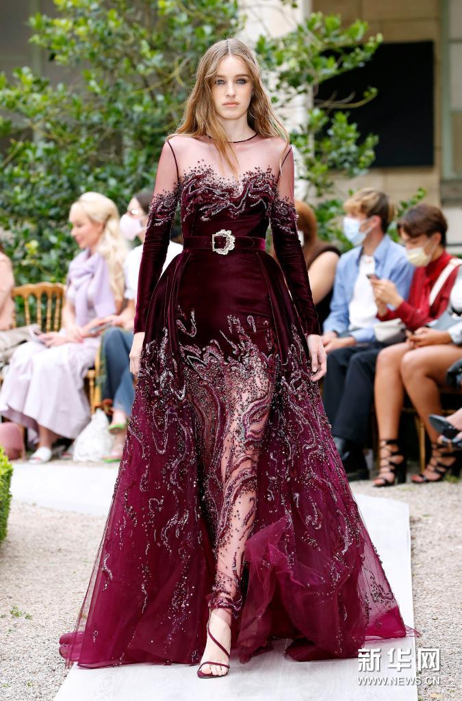 7月7日,模特在法國巴黎高級定制時裝周上展示Zuhair Murad品牌2021/2022秋冬新品。