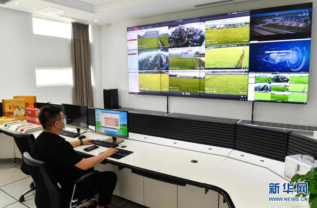 在吉林市孤店子鎮(zhèn)東福米業(yè)現(xiàn)代農(nóng)業(yè)信息化監(jiān)視指控中心,工作人員通過監(jiān)控系統(tǒng)查看稻田情況(2020年8月13日攝)。近年來,吉林省吉林市大力發(fā)展“智慧農(nóng)業(yè)”,以新技術(shù)、新模式、新業(yè)態(tài)為抓手,在希望的田野上播撒“科技種子”,讓農(nóng)民從“會”種地到“慧”種地,保障糧食安全,助力鄉(xiāng)村振興。