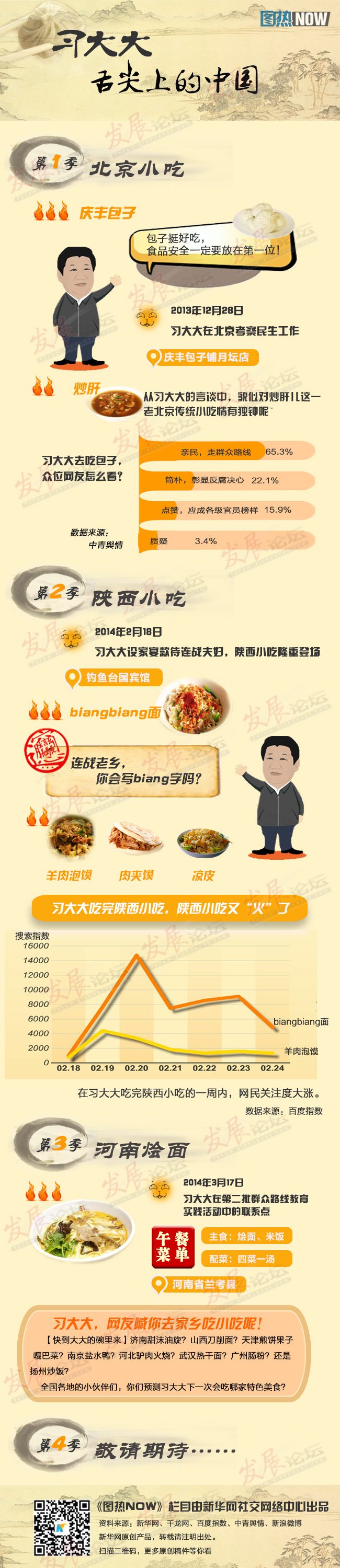 從慶豐包子到河南燴面,習(xí)大大的舌尖,嘗火了一批簡單實(shí)惠又不乏文化底蘊(yùn)的中華美食。究竟還有多少這樣的美食會一波波火起來?各級官員,快來學(xué)習(xí)習(xí)大大清新簡約樸實(shí)親民的“食風(fēng)”吧!