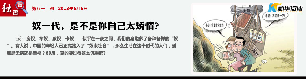 【抵制種種誘惑】 “寧愿在寶馬車里哭泣,也不愿騎著自行車去看風景”,“80后”們拜倒在“奴”的石榴裙下不愿再起來。不為“奴”便不會有豪宅香車,不會有高官厚祿,不會有錦繡前程,也不會有寬闊華美的家。