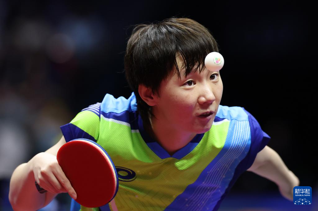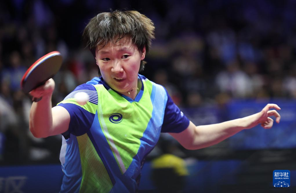 11月16日,河北队选手孙颖莎在比赛中回球。