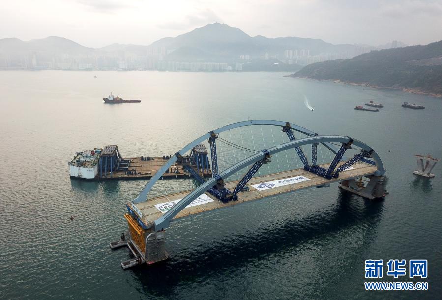 新華社香港2月26日電(記者陸敏、吳俊怡)由內地企業獨家承建的香港將軍澳大橋主橋26日成功安裝,這一外飄式雙拱鋼橋重約10000噸,以高強度鋼材建造,跨徑200米,建成后將是全港跨度最大和單體最重的鋼拱橋,將成為香港又一地標性跨海建筑。
