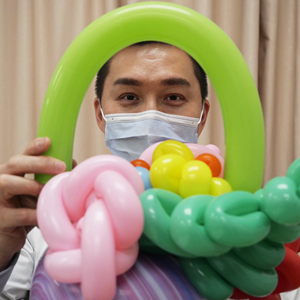 去年3月至5月,他組織一群志同道合的朋友手工制作了多款造型可愛的氣球贈送給醫護同仁,并在其任職的東區尤德夫人那打素醫院(簡稱“東區醫院”)專門設立了大型氣球擺設區。在疫情陰霾下,色彩繽紛的氣球墻為大家帶來暖意。