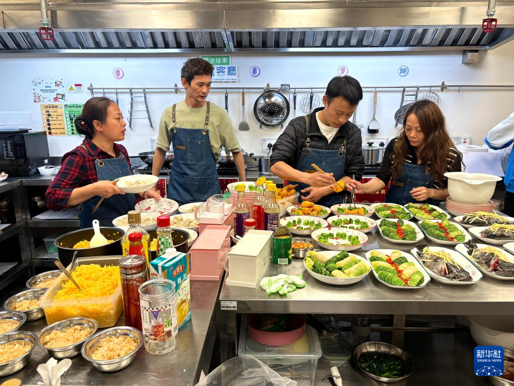 与李汉声一样,32岁的卓贤生也在社区客厅找到了归属感。他正在厨房蒸鱼,忙得不亦乐乎,大方桌上已摆满各式菜肴。“我主要负责配菜,早上送完孩子上学就过来帮忙,能为大家的团年饭出一份力,特别开心。”
