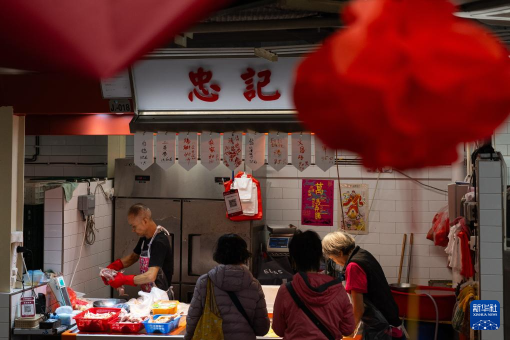 2月12日,市民在澳门红街市选购食材。新华社发(张金加 摄)