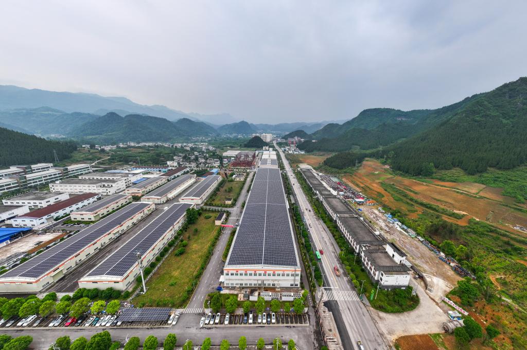 这是5月14日拍摄的贵州省江口县贵茶产业园抹茶精制车间(无人机照片)。
