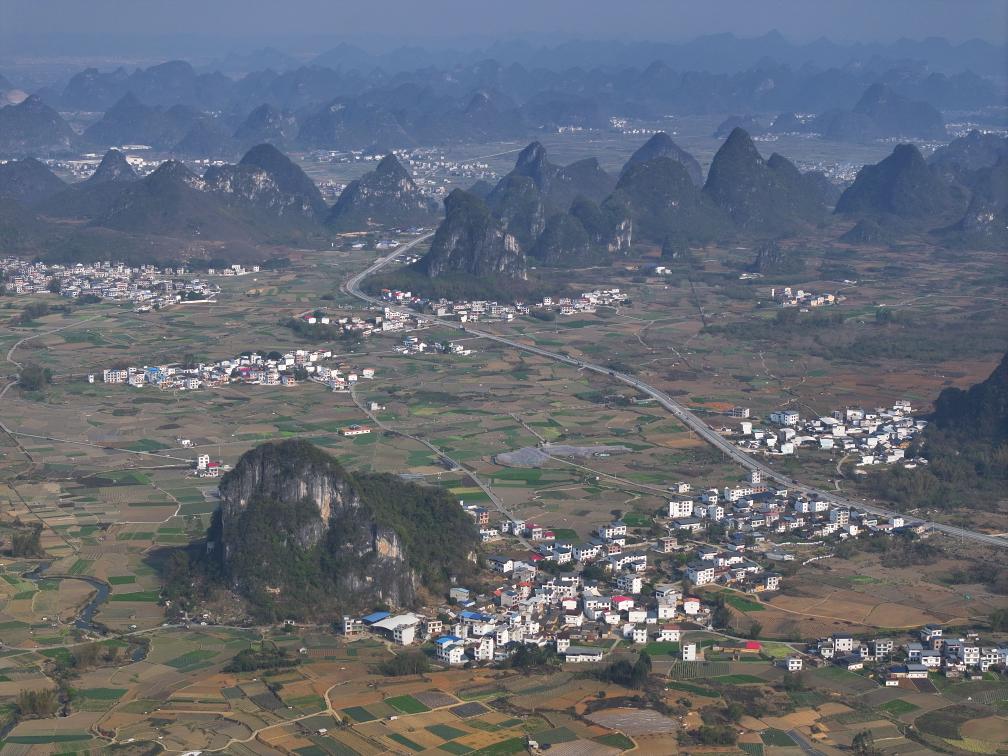 这是群山环绕的桂林市阳朔县兴坪镇乡村(2021年4月25日摄)。