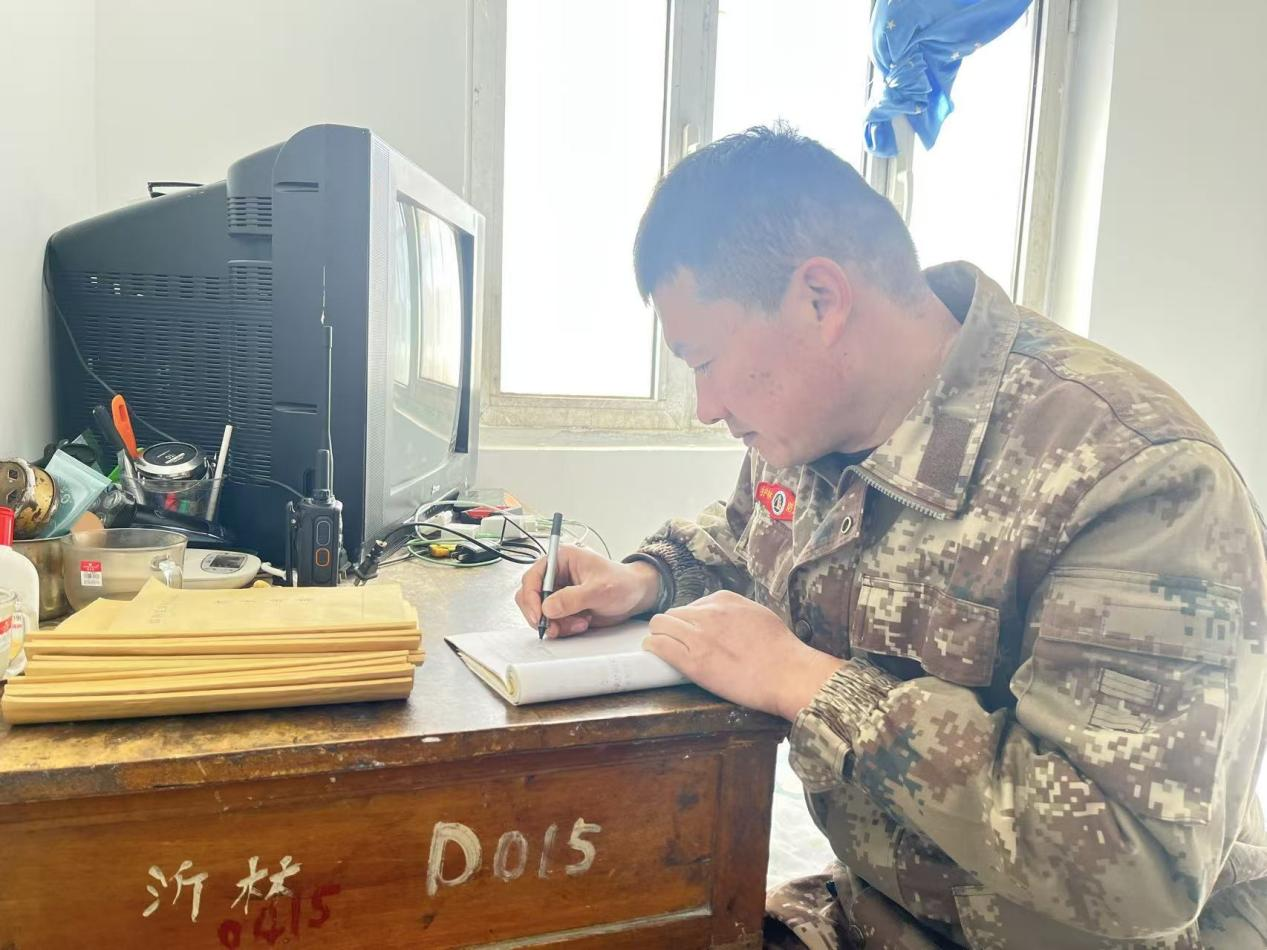 哨所的角落里,一摞卷边泛黄的山林笔记静静摆放,那是蔡长春28年护林生涯的“履职档案”,从1998年至今,从未间断。“你看,这每一页都记着天气、巡护路线、林木长势,哪片林子容易有隐患,都记在上面。”蔡长春指尖轻轻摩挲着笔记,面庞被山间的风吹得黝黑,双手遍布岁月留下的刻痕。说话间,他翻开最新一页,提笔写下:“新春吉日,晴,风力二级,林区无异常,防火巡护有序。”一笔一划,工整有力,字里行间,既有对工作的严谨负责,更有对这片山林深沉的牵挂。