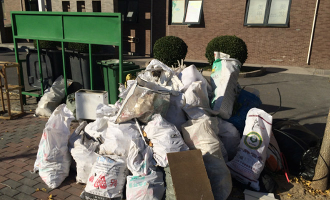 為了業(yè)主的方便,小區(qū)內建有一些長凳。不過小區(qū)的綠化面積較少,垃圾桶邊上也堆滿了建筑垃圾和被丟棄的家具,業(yè)主稱“扔在那很長時間了,沒有人清理”。