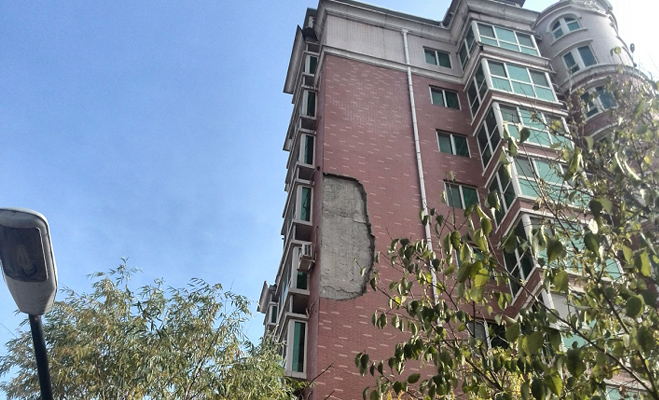 兩個小區(qū)的建筑質(zhì)量均相對較好,未出現(xiàn)重大質(zhì)量問題。業(yè)主們反映,“小區(qū)存在墻皮脫落、衛(wèi)生間漏水、暖氣漏水和電梯偶發(fā)性運(yùn)行故障等小問題,物業(yè)也及時處理修復(fù)”。