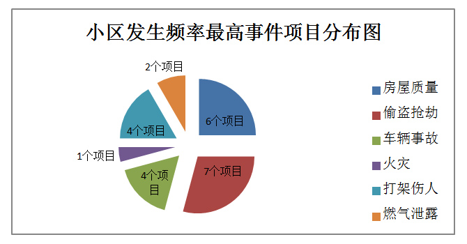 根據上述兩個表格發現,整體來看,金隅各小區安全隱患較多,13個項目中共10個項目存在安全隱患,占77%。其中偷盜搶劫比例最多,占54%,其次為房屋質量,占46%,項目中金隅花石匠、金隅觀瀾時代、金隅嘉和園三個項目問題比較多。