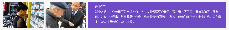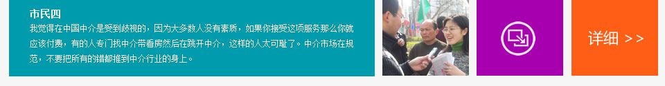 搜狐二手房網(wǎng)深圳站總經(jīng)理王增益:經(jīng)紀(jì)人的生存現(xiàn)狀應(yīng)該重視,首先是行業(yè)的競爭非常激烈,其次是社會上對他們?nèi)匀挥幸恍┢姡俅问墙诘兔缘男袠I(yè)大大加劇了經(jīng)紀(jì)人的壓力,我們呼吁社會大眾關(guān)注他們、理解他們。