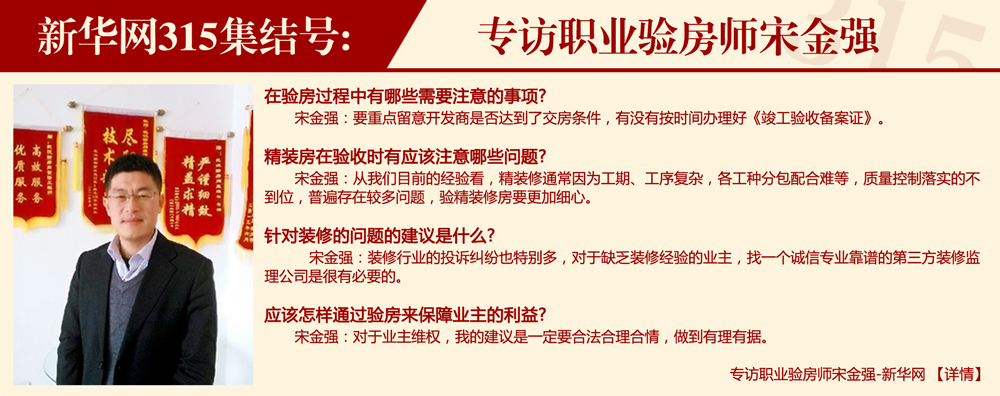 為此,新華網房產將推出“3·15”特別策劃案——“安居夢”去哪兒了?通過論壇、微博、微信、調查問卷等多種方式征集廣大業主爆料遇到的各種有關房屋的安全隱患問題。新華房產將根據網友反映的問題,安排資深記者進行跟蹤報道,同時邀請相關領域的專家律師,對網友的問題進行解答。【詳細】