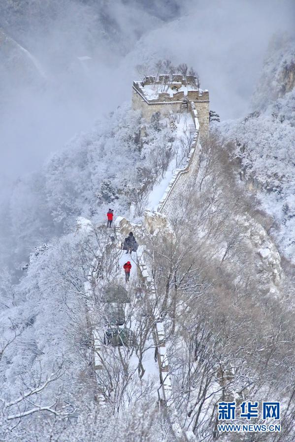 3月1日在北京市懷柔區拍攝的雪后箭扣長城美景。新華社發(劉憲國 攝)