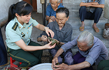 廣西欽州邊檢站官兵端午節前慰問敬老院孤寡老人??