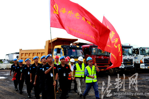 ????日前,為踐行“兩學(xué)一做”實(shí)踐,全面推進(jìn)“講黨性、迎考驗(yàn)、當(dāng)模范”主題教育,中國(guó)第四支駐利比里亞維和警察防暴隊(duì)聯(lián)合駐利中資企業(yè)開(kāi)展聯(lián)創(chuàng)聯(lián)建活動(dòng),組建了由黨員先鋒骨干,機(jī)電、車(chē)輛維修等各領(lǐng)域技術(shù)“專(zhuān)家”以及醫(yī)護(hù)人員組成的海外黨員服務(wù)隊(duì)。