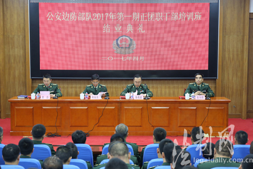 ????4月25日上午,公安邊防部隊2017年第一期正團職干部培訓班在上海邊防總隊訓練基地舉行結訓典禮??傟牶拖驏|政委出席并講話。