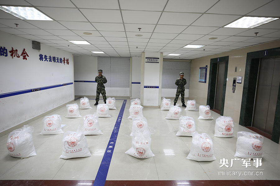 廈門邊防支隊(duì)官兵看守收繳的毒品