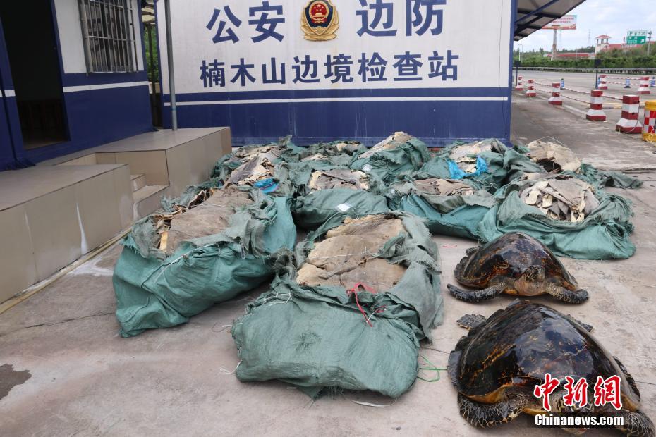廣西邊防官兵查獲涉嫌非法運輸玳瑁標本及11袋鯊魚皮