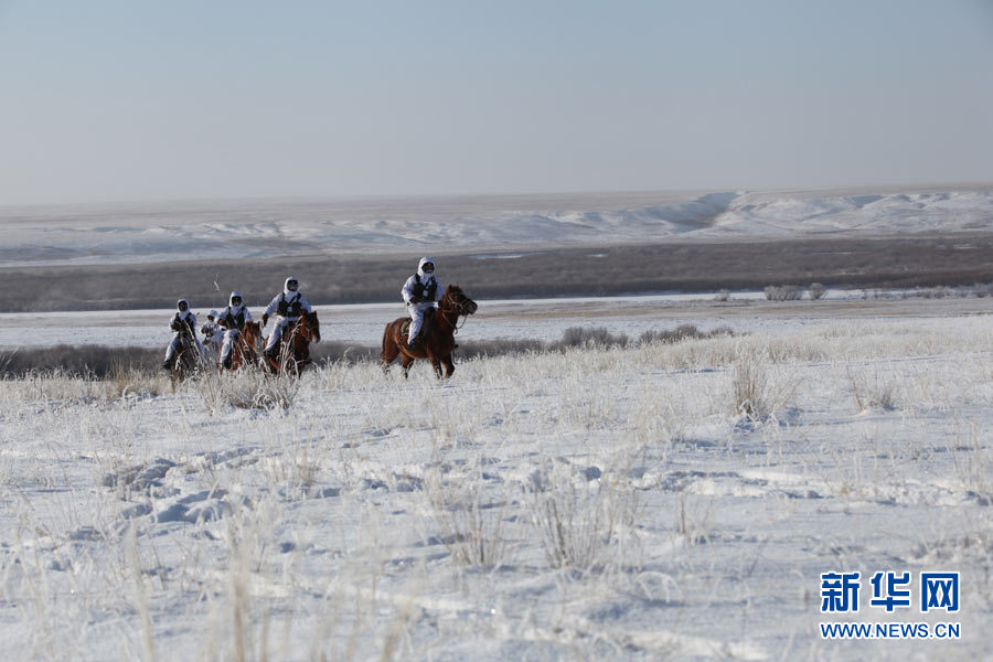 戍邊官兵冬季在邊防線上巡邏執勤。陳在林 攝
