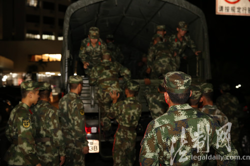 珠海公安邊防支隊官兵登車前往受災嚴重區域搶險救災