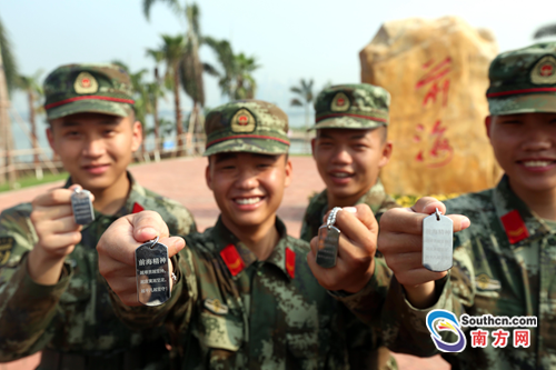 ????“楊志!”“到!”“你是一中隊第幾名戰士?”“我是一中隊第169名戰士,身為模范集體一員我深感驕傲!”“現在授予你榮譽牌,請入列!”9月5日,在中國人民抗日戰爭暨世界反法西斯戰爭勝利72周年之際,廣東邊防六支隊一中隊指導員趙文超與戰士們鏗鏘有力的對話在深圳前海這塊創新改革的土地上響亮。當天,該中隊向每一名官兵授予了一枚銀光閃閃的專屬榮譽牌。榮譽牌正面刻有中隊番號、擁有者姓名和自己的編號,背面中隊精神“越艱苦越堅持,越寂寞越堅定,越平凡越堅守”幾個大字十分顯眼。在榮譽牌授予儀式上,全體官兵熱血沸騰,斗志昂揚,面對隊旗莊嚴舉起握拳的右手,用鏗鏘的誓言致敬意、表決心、釋忠誠。