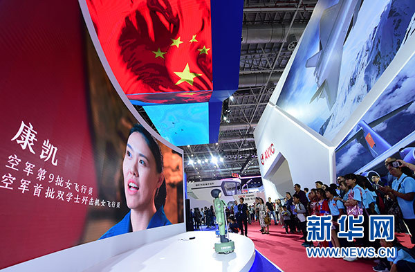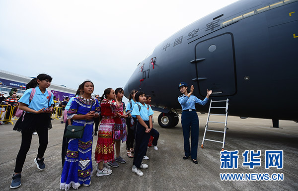 藍天春蕾女童在航展現場參觀(11月10日攝)。新華社發(陳藝 攝)