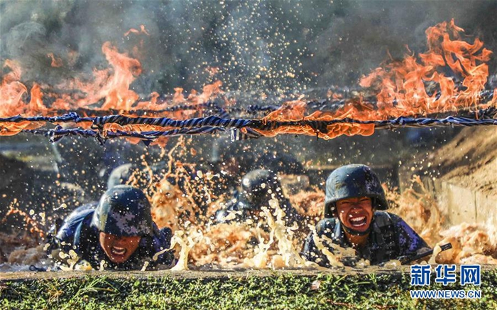 海軍陸戰隊某旅偵察營在三亞某訓練場開展極限體能訓練(11月21日攝)。新華社發(范旭東 攝)