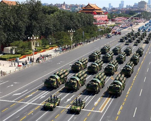 ????資料圖片:2015年9月3日,中國人民抗日戰爭暨世界反法西斯戰爭勝利70周年紀念大會在北京隆重舉行。這是裝備方隊通過天安門廣場。