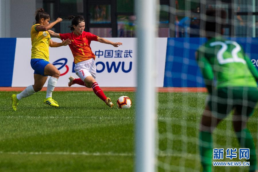 10月24日,中國隊(duì)球員劉艷秋(中)在比賽中突破傳球。 當(dāng)日,在武漢舉行的第七屆世界軍人運(yùn)動會女子足球半決賽中,中國隊(duì)以2比1戰(zhàn)勝巴西隊(duì),晉級決賽。 新華社記者劉金海攝