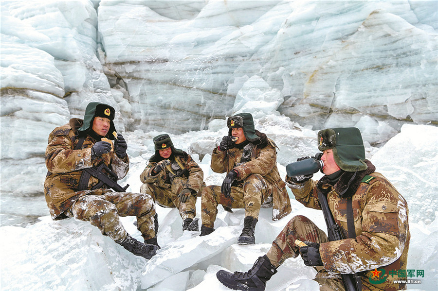 連鷹都飛不過去的冰川 邊防官兵在這里展開五星紅旗
