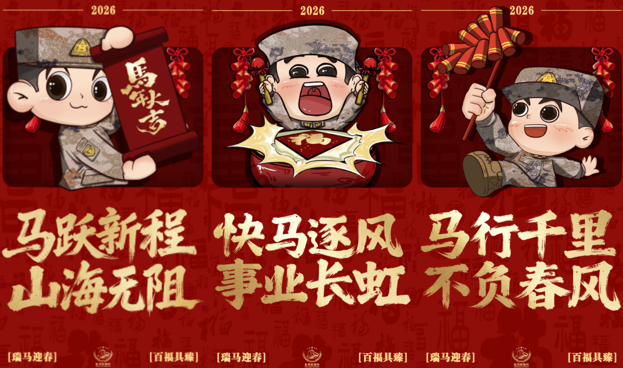 2026瑞马迎春,戎装焕彩贺新春!看兵哥哥卡通形象燃动年味,放鞭炮、舞醒狮,展军旅豪情。“马跃新程” 踏山海,“快马逐风” 启华章。东部战区联勤官兵携六重祝福,祝大家马年万事顺意、事业长虹,马行千里不负韶华,岁岁平安喜乐长安! (策划:赵若昕 董浩 形象设计:叶子民)