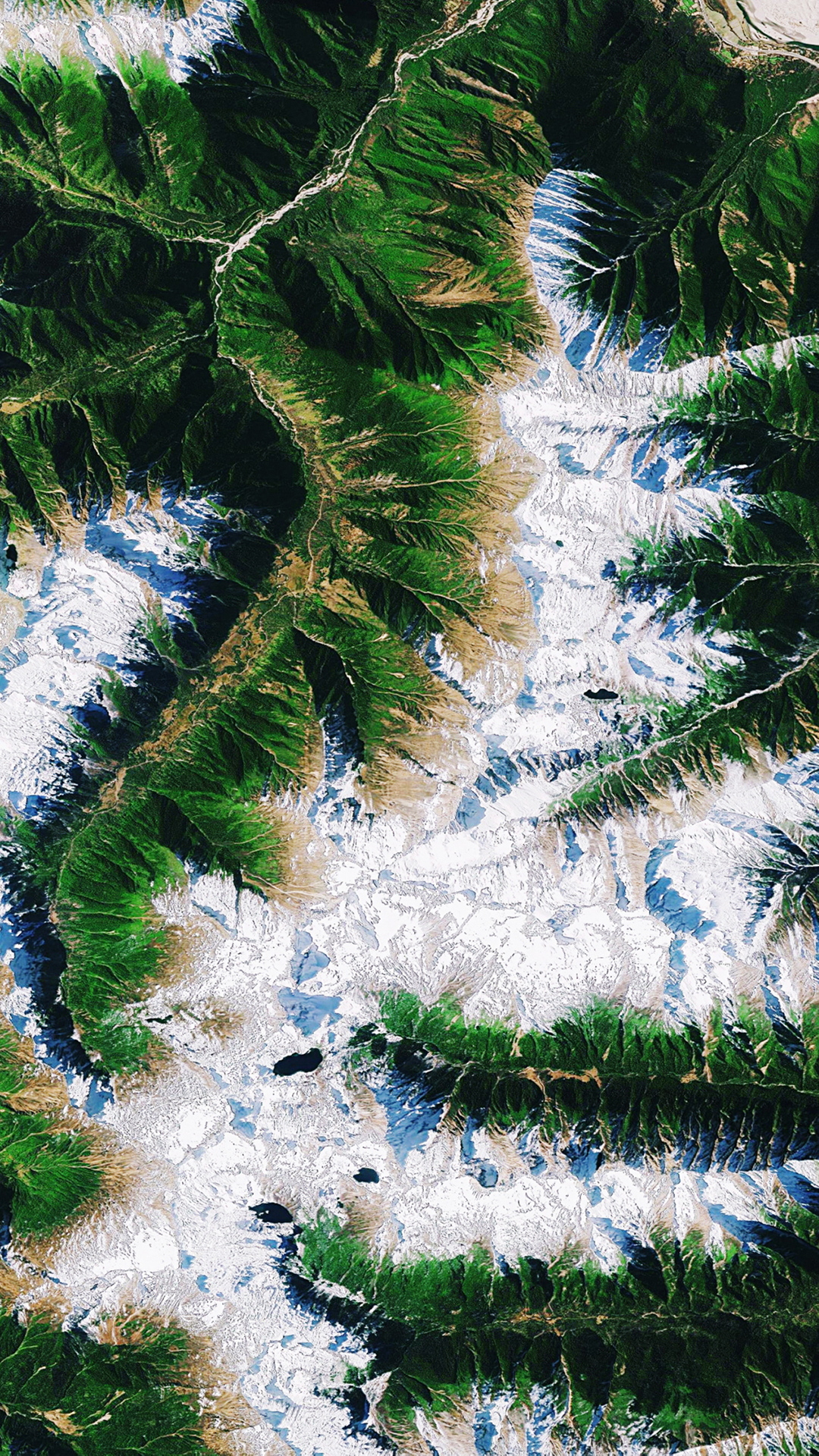 ▲圖為西藏自治區(qū)墨脫縣局部衛(wèi)星圖,這是一個森林與冰雪相生相伴的地方。衛(wèi)星數(shù)據(jù)來源:資源三號
