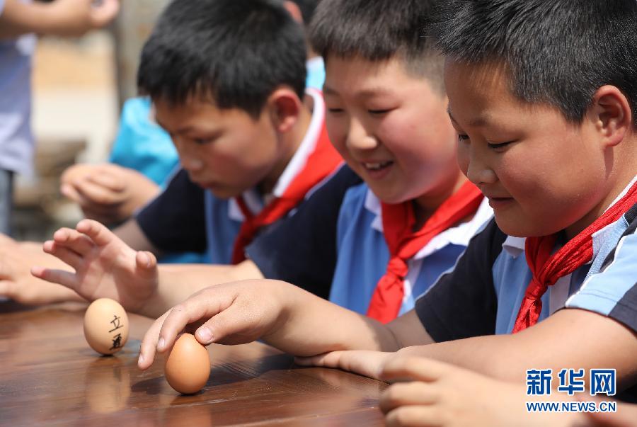 5月5日,在浙江杭州臨安區(qū)天目山鎮(zhèn)武山村,幾名小學生在體驗“立蛋”的傳統(tǒng)習俗。立夏節(jié)氣將至,人們參加繪彩蛋、稱體重等活動,體驗傳統(tǒng)民俗。新華社發(fā)(胡劍歡 攝)