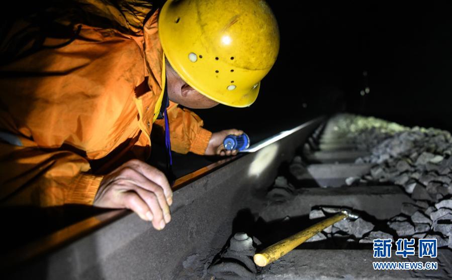 在廣西河池境內黔桂鐵路線上的鄧山隧道,中國鐵路南寧局集團有限公司柳州工務段的4名看守工輪換值班,依靠手電筒在黑暗中穿行,及時巡查隧道中可能出現(xiàn)的各種隱患,確保每天經(jīng)隧道運行的59趟客貨列車春運安全。鄧山隧道全長773米,是一個需要人員全天候看守的鐵路隧道。