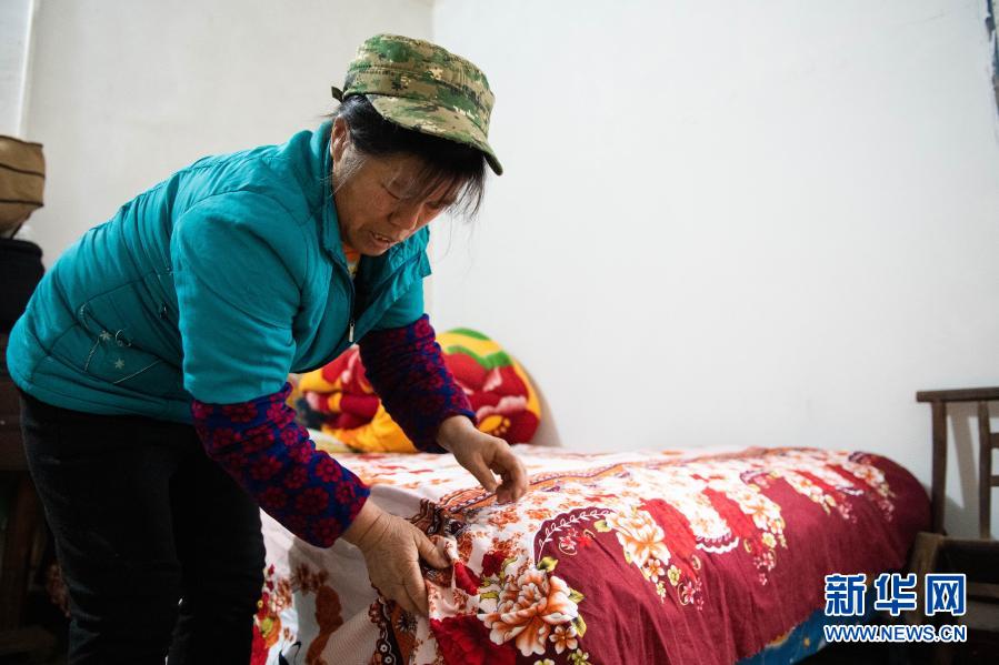 1月29日,在湖南省瀘溪縣浦市鎮麻溪口村,楊玉英為兒子整理被褥。