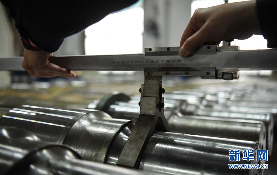 2月1日,柳州車輛段車輪車間質(zhì)量檢查員在測(cè)量輪對(duì)軸間距。新華社記者 張愛林 攝
