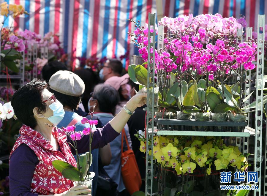 2月6日,市民在香港維多利亞公園的年花銷售點(diǎn)選購鮮花。新華社記者 李鋼 攝