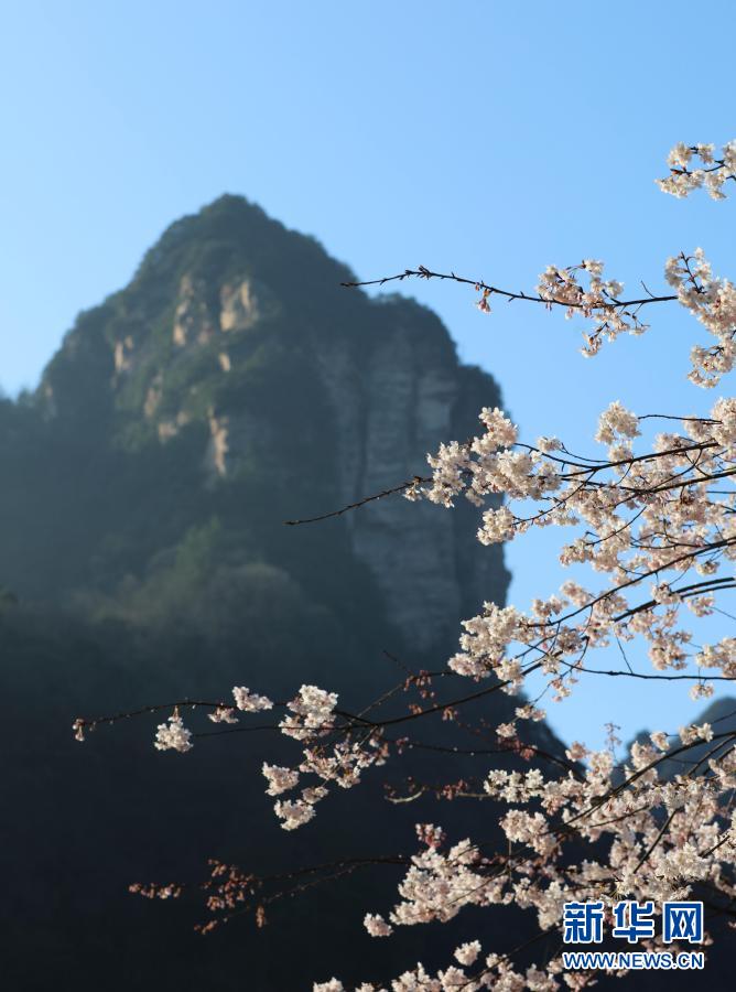 湖南張家界武陵源景區十里畫廊的櫻花競相綻放(2月14日攝)。新華社發(吳勇兵 攝)
