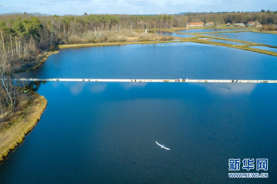 2月27日,人們在比利時小鎮波克萊克附近的“水中通道”中前行(無人機照片)。