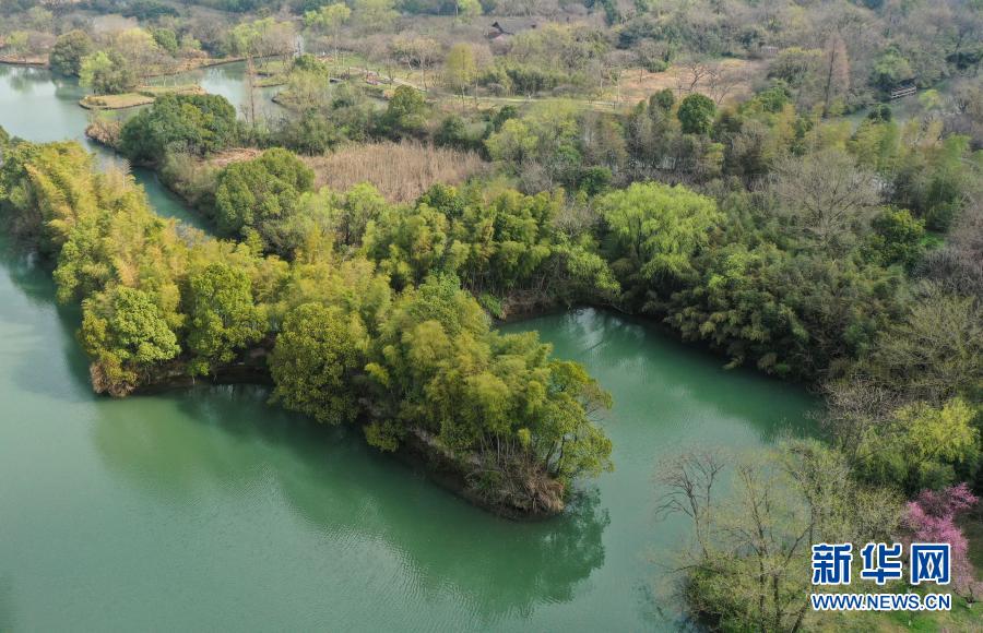西溪濕地內植被吐出新綠(3月2日攝,無人機照片)。