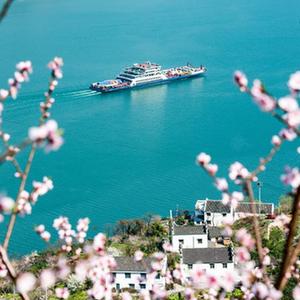 春到三峽,桃花盛開,江水碧綠,船舶往來(lái)如梭,構(gòu)成一幅幅美麗的圖畫。