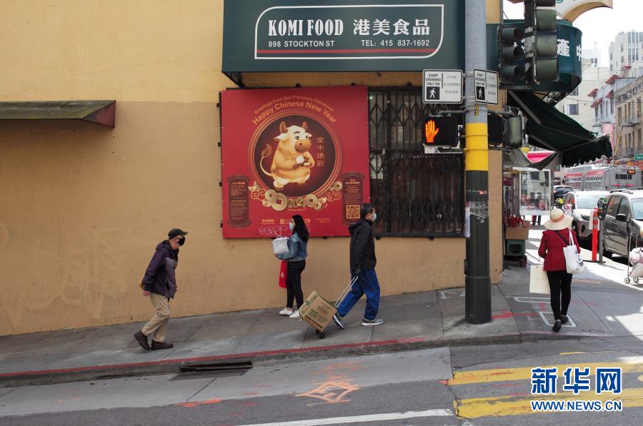 3月3日,人們走在美國加利福尼亞州舊金山唐人街街頭。