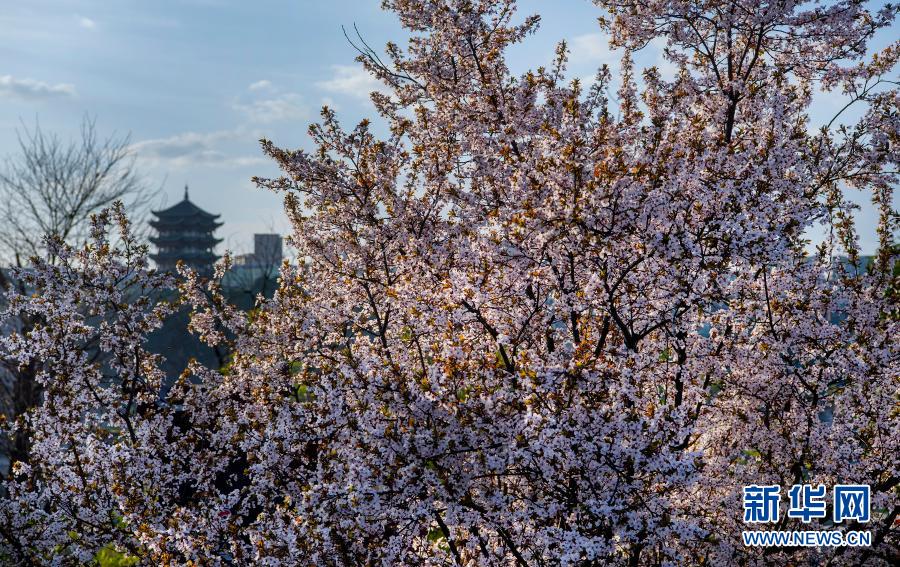 這是3月3日拍攝的鮮花映襯的安康市漢濱區漢江之濱景色。新華社記者 陶明 攝