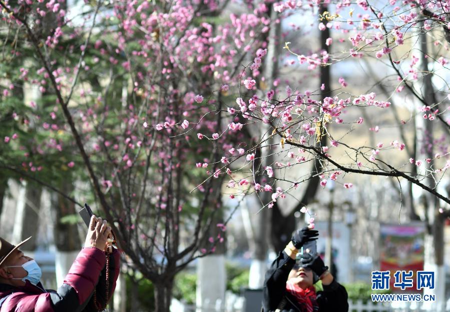 3月4日,人們?cè)诶_龍王潭公園賞花、拍照。