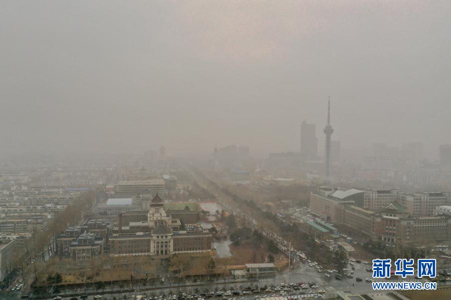 這是3月15日拍攝的沙塵籠罩的吉林省長春市(無人機照片)。當日,我國北方多地出現沙塵天氣。新華社記者 張楠 攝