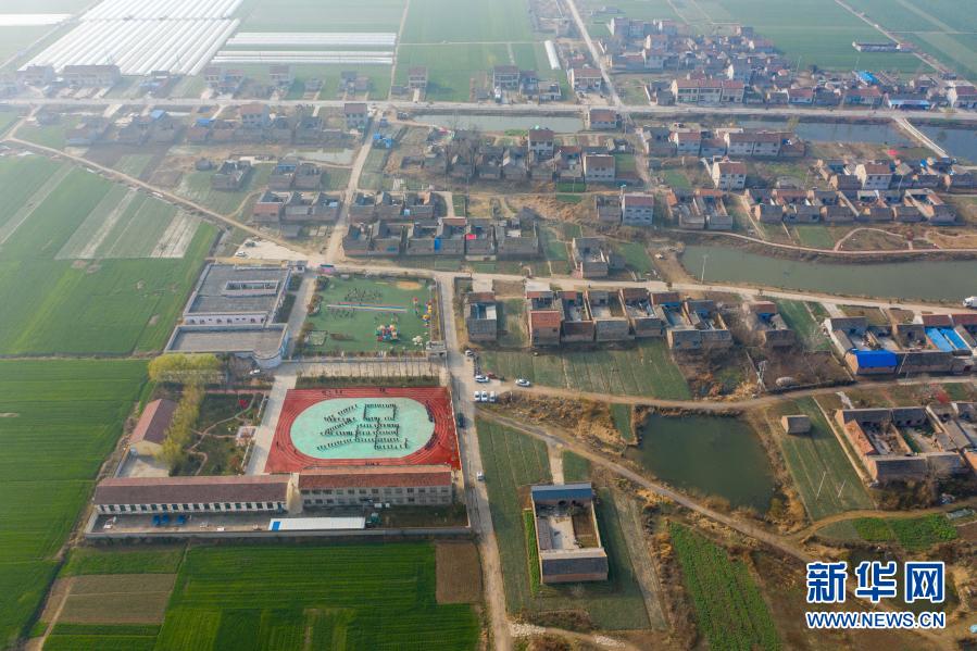 這是騎路小學所在的江蘇省徐州市睢寧縣慶安鎮騎路劉村(3月10日攝,無人機照片)。新華社記者 李博 攝