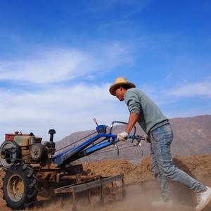 3月8日,青海省黃南藏族自治州尖扎縣當順鄉東果村村民夏吾索南在犁地。新華社記者 白瑪央措 攝