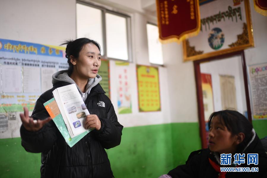 3月16日,索加鄉(xiāng)寄宿小學(xué)語(yǔ)文老師查日在為學(xué)生上課。新華社記者 張宏祥 攝
