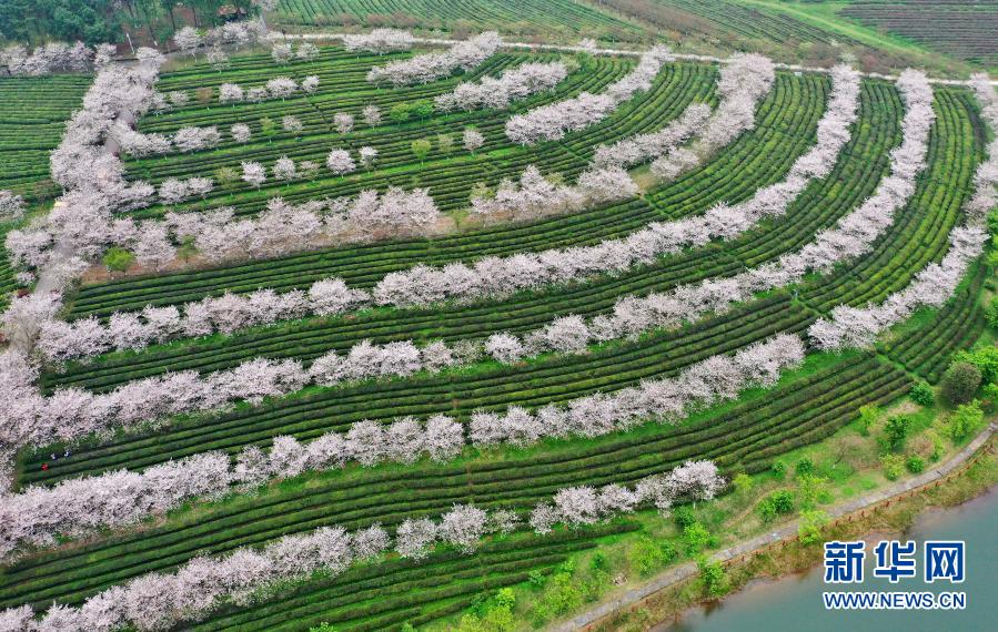 這是3月20日拍攝的南昌縣鳳凰溝景區盛開的櫻花(無人機照片)。